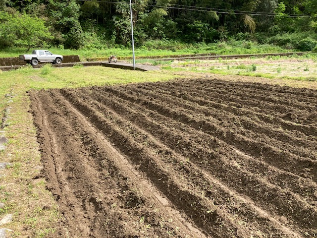 この作業は、今年の春ウコンの種を植えるための準備です。
