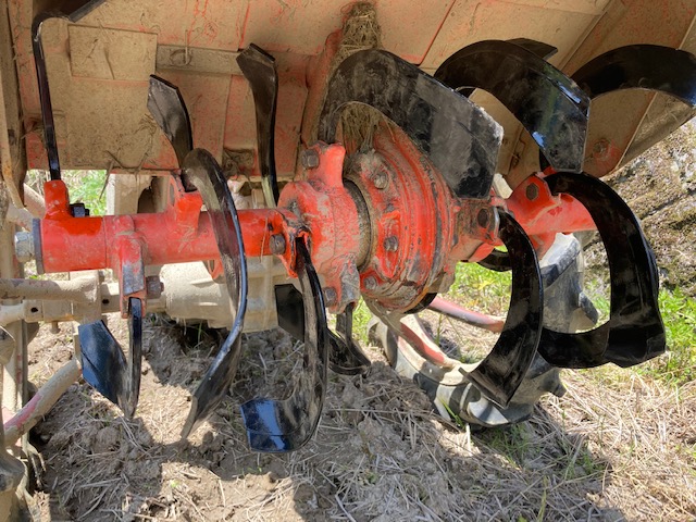 耕耘機の「歯」を付け替えて、畑を耕し、畝(うね)作りをします。